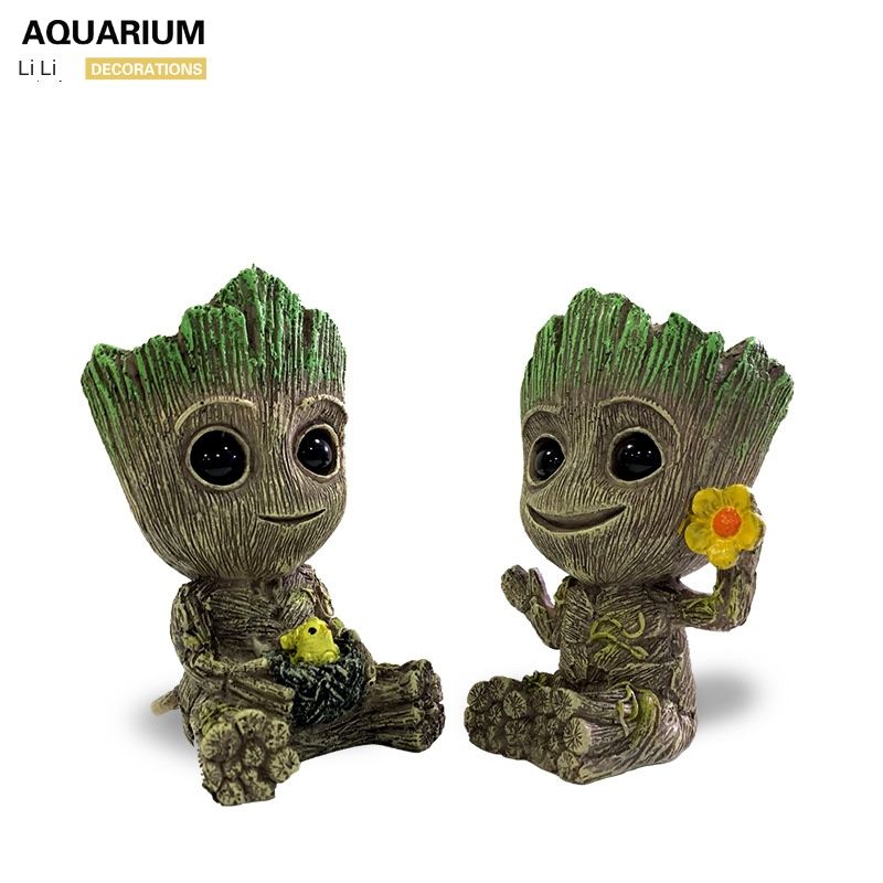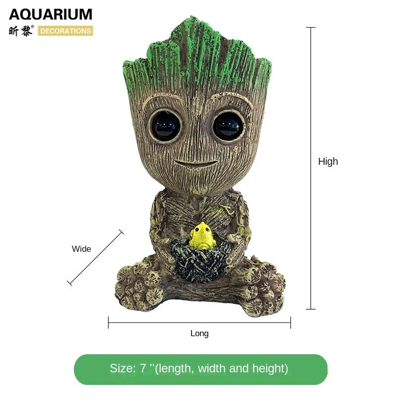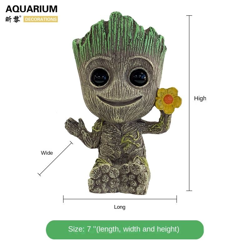 Add some fun to your fish tank with a mini tree man decoration! (i.e., Baby Groot!). This dual-purpose resin piece not only enhances your aquarium's landscape, but also increases oxygen levels with its bubble stone.